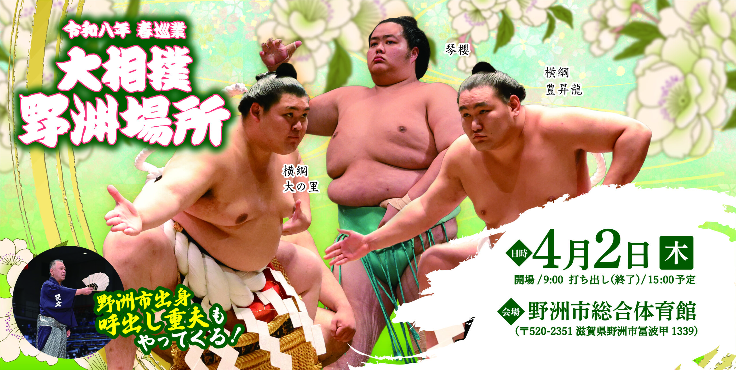 「大相撲 野洲場所」を、2026年4月2日(木)に野洲市総合体育館にて開催致します。