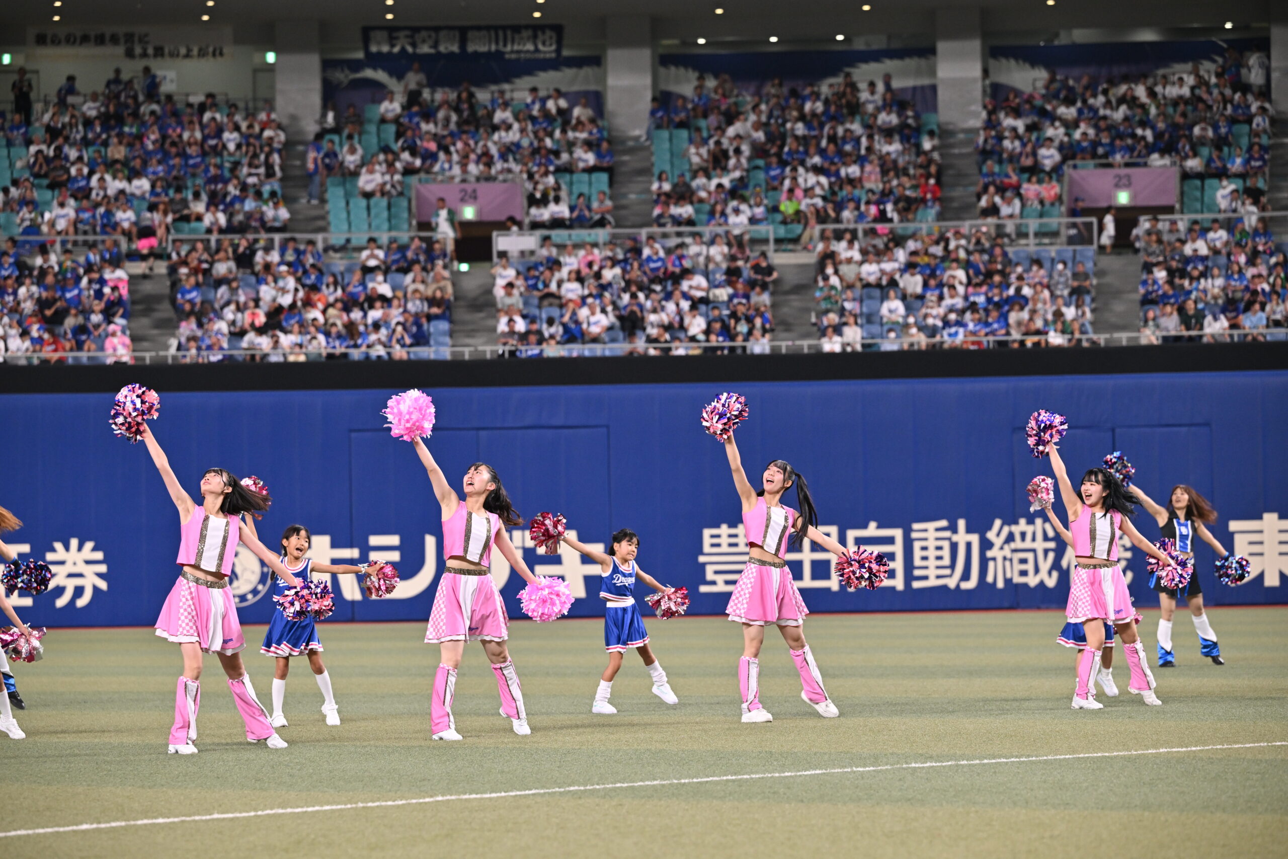 試合前のオープニングパフォーマンスと、7回裏のドラゴンズのラッキー7で出演し、チアドラゴンズ2025の皆さんと一緒にパフォーマンスしました。